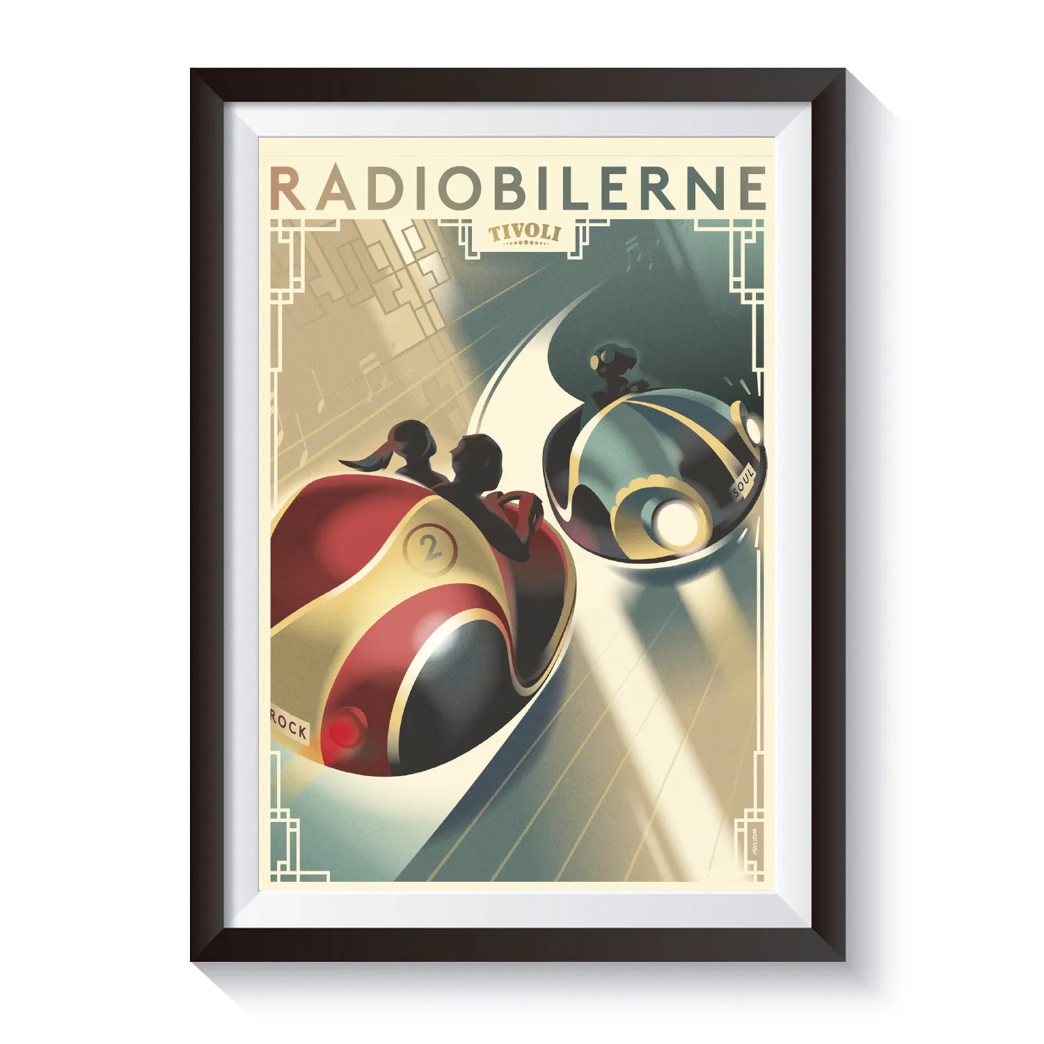 The bumber cars have now been given a new design. The antennas have been scrapped and the new 18 new cars have been given more than 280 m2 to move around on. The wagons are a hybrid between cars and wild buffaloes so you can experience speed, pace and fun all at the same time. The scenography is inspired by the 1920s American art-deco style and the atmosphere is among other inspired by one of the most famous cowboys from the Wild West, the showman Buffalo Bill. The poster comes without frame.